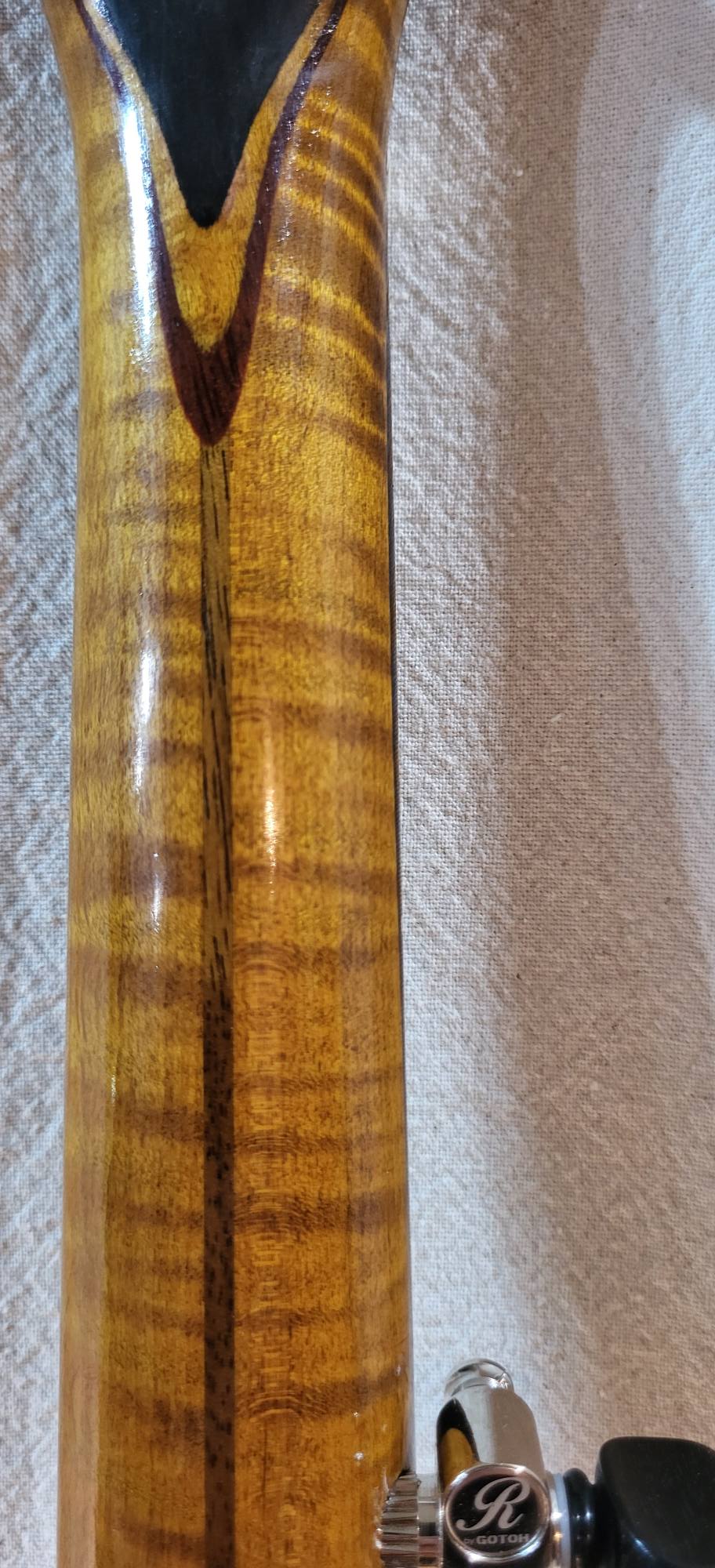 Refinished neck with linseed oil and bee wax.