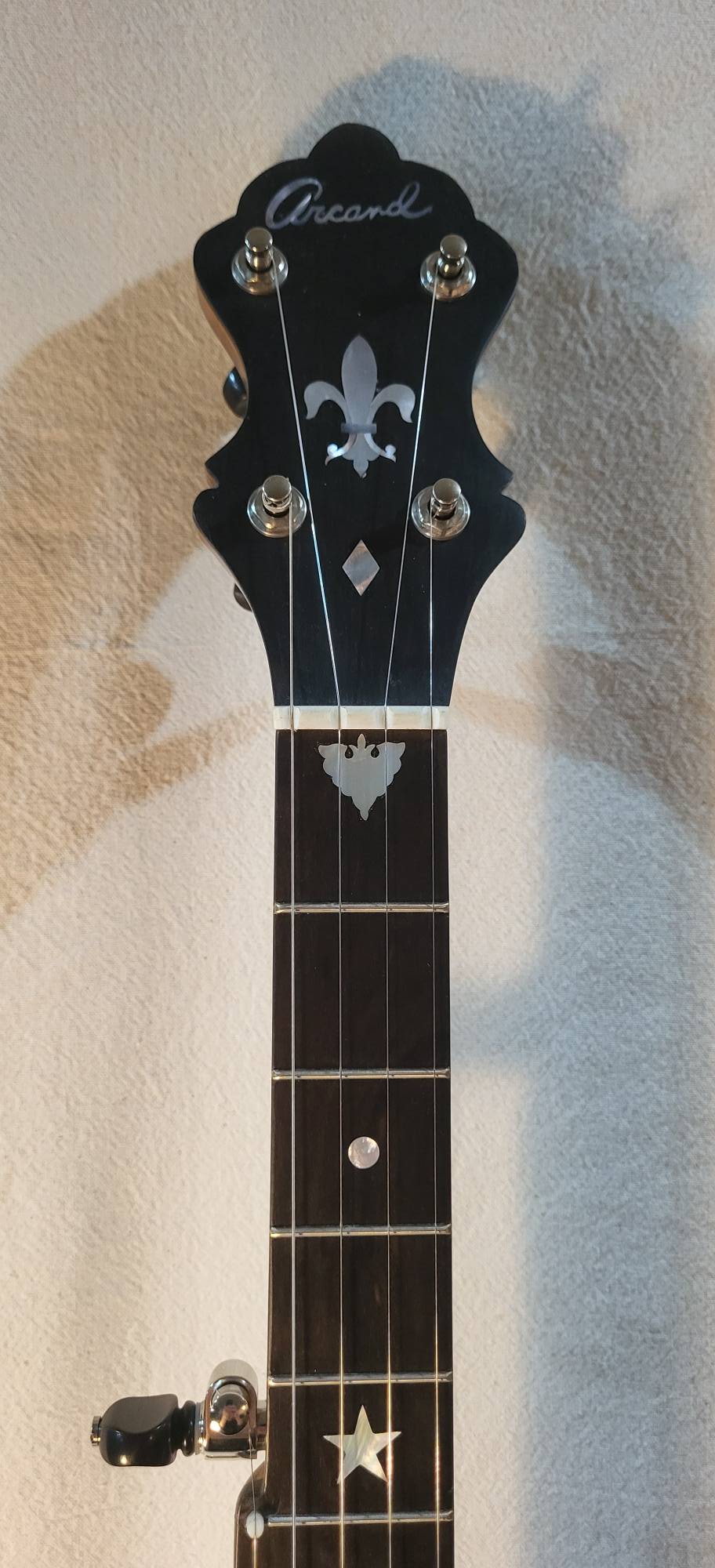 Second Life Banjo / Carl Arcand. Plated number 1374-4 and ready for another century of music.