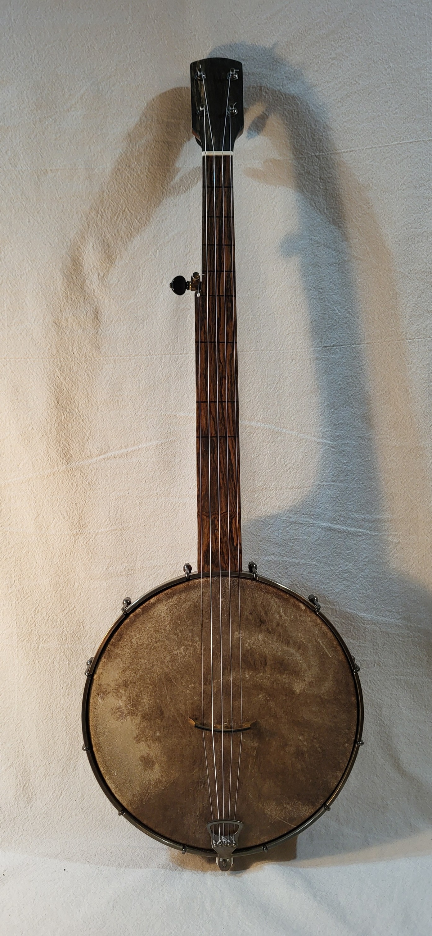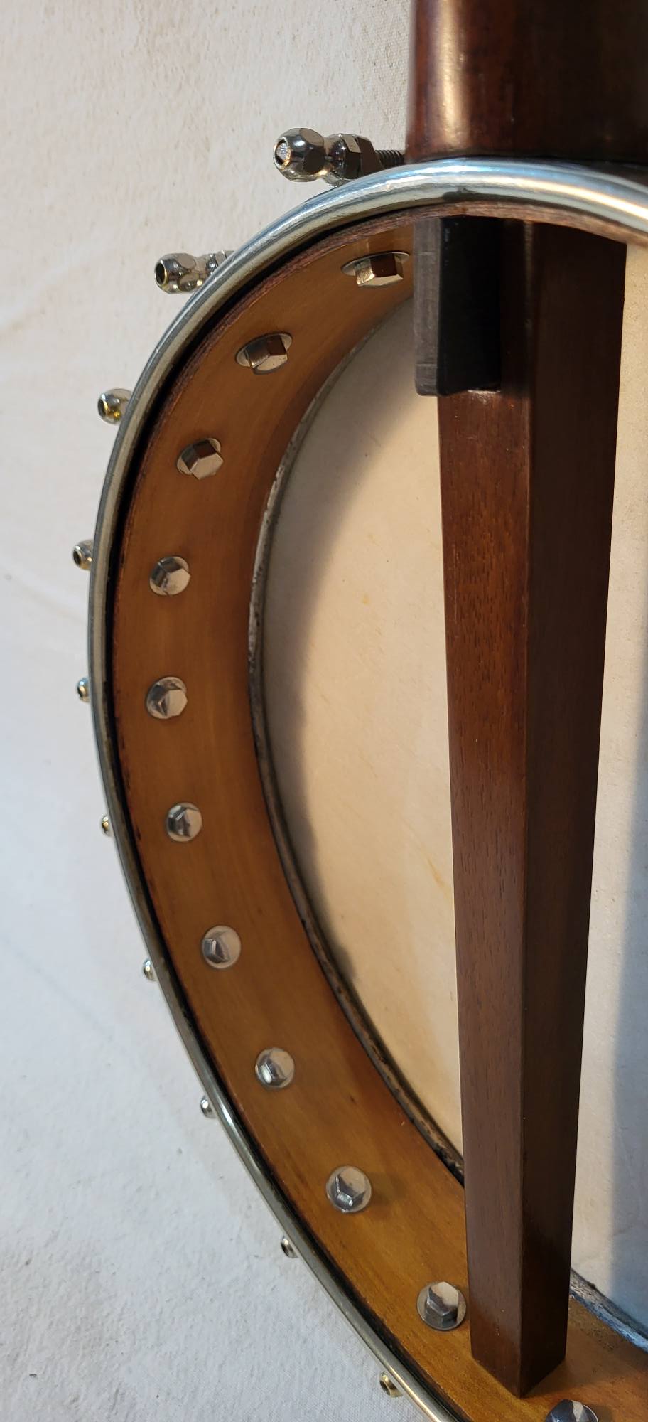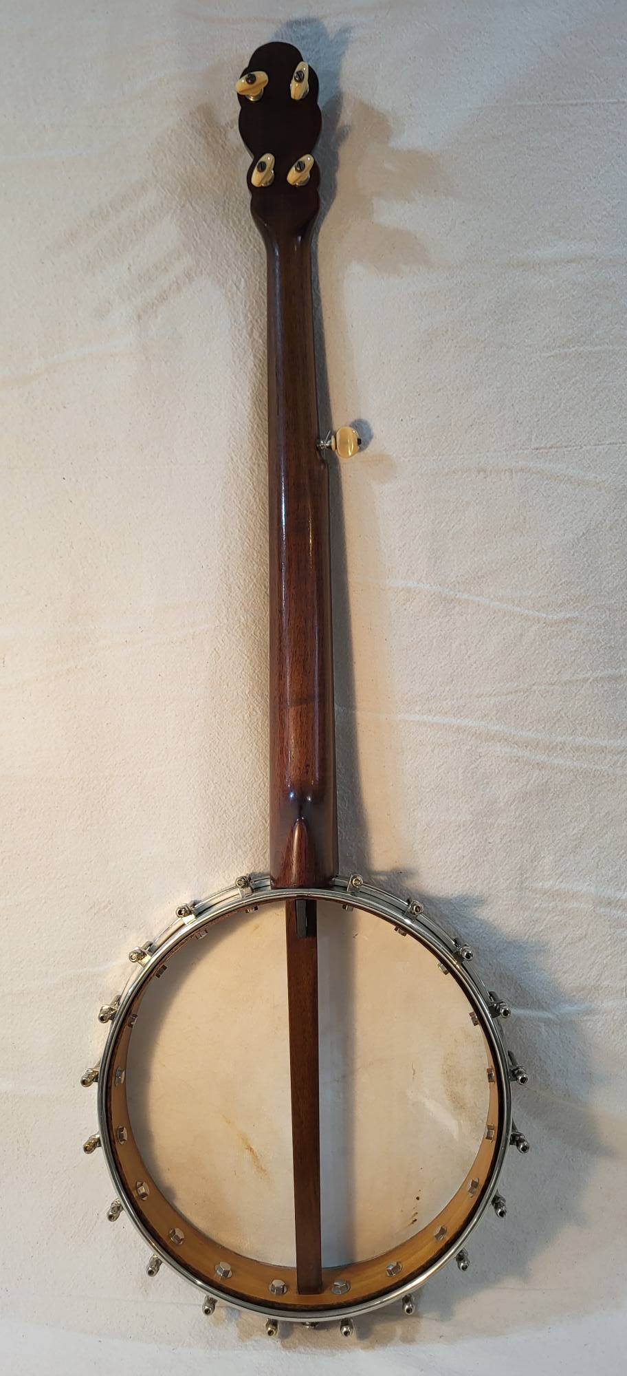 Fine banjo with a deep old time sound strung with Nylgut strings. Neck will support light steel strings,