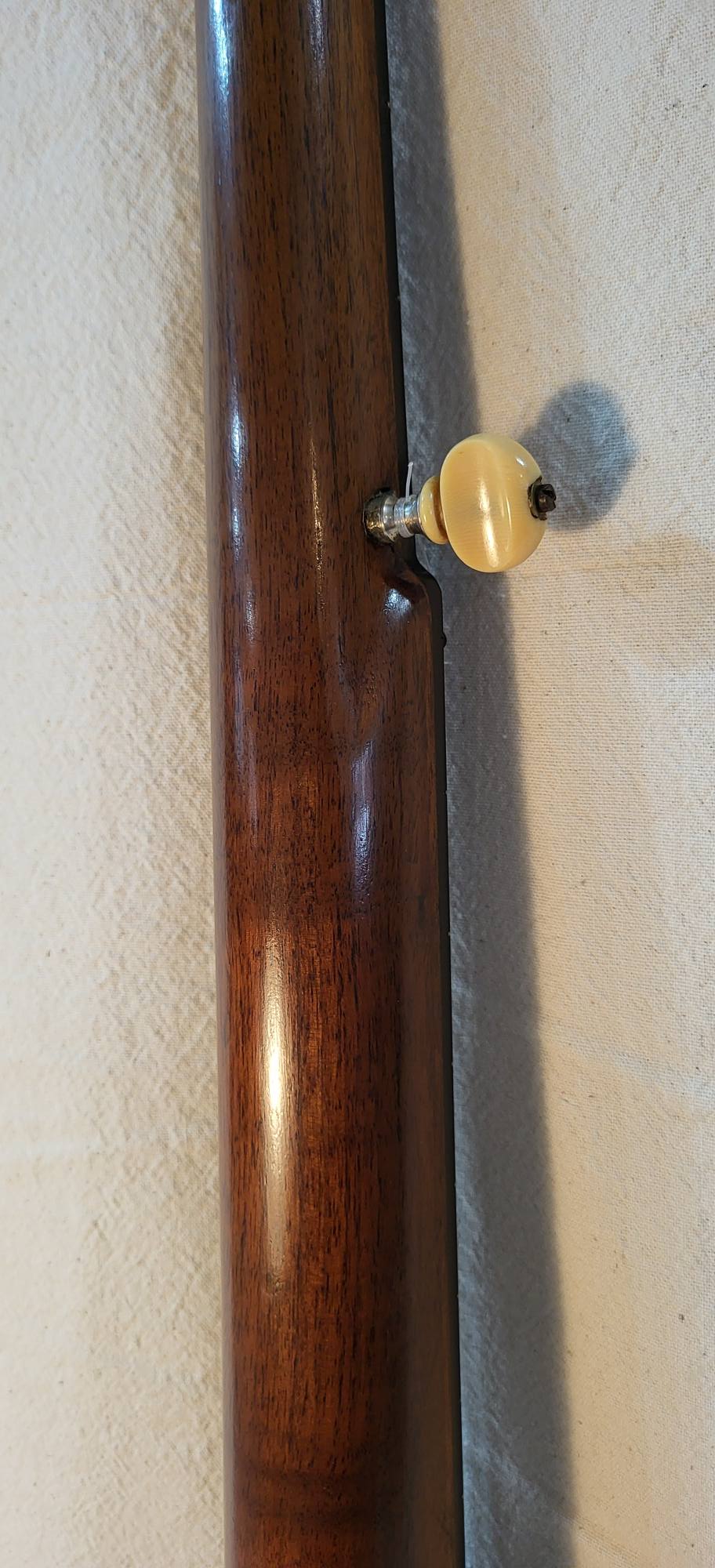 The wood rim has been cleaned and lightly refinished with tru-oil.